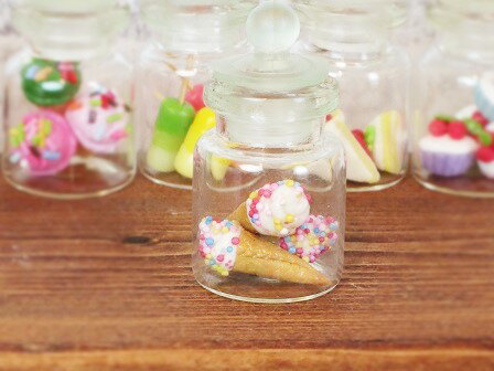 【ミニチュア ソフトクリームバニラ(ボトル入り)】ミニチュア小物 ミニチュアスイーツ ミニチュア雑貨 ミニチュアインテリア デコパーツ ナチュラル雑貨 サイズ:ボトル 直径2××H4.2cm ソフトクリーム W0.8×D0.5×H2.2cm 素材:レジン・ガラス 小瓶に入った可愛いソフトクリームです。