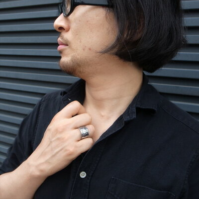 今回もメンズ・レディス共に愛用できるアクセを創り出した! 大人使いにピッタリな幅広タイプのリングにダマスク柄を施したシルバーリング。
